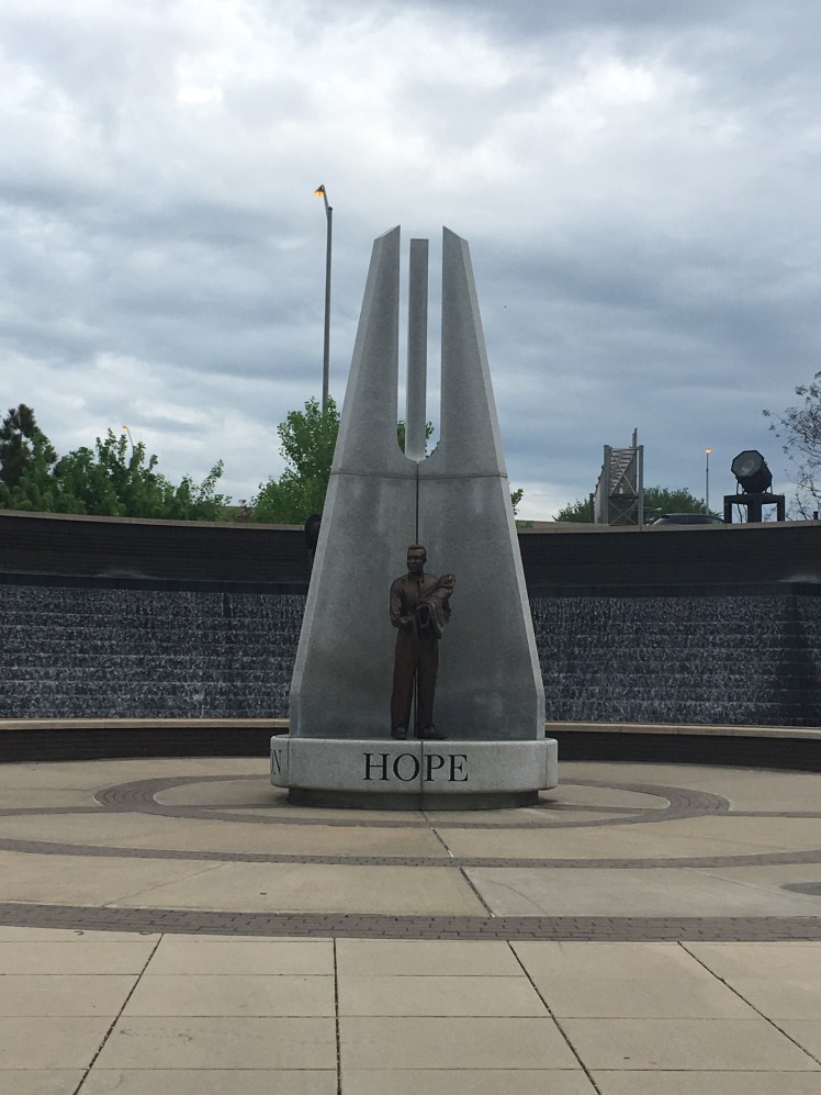 Today we went to understand the differences between Black and White in the past better. Our excursion destination was the John Hope Center for Reconciliation. First we had a guide who explained some interesting facts about history and about the situation nowadays. Then we walked around the park which was beautifully created. In my opinion it is a very interesting place to learn or just hang out. The next thing we did was just walking around searching for the historic Booker T Washington High School, where in the past only black kids went to. After having lunch at Fat Guy in the Black Wallstreet we went to see the baseball stadium of the Tulsa Drillers. This is one thing to argue about because the black people want to create space to reflect on the past and the white people want to create space to enjoy. It is no easy situation.